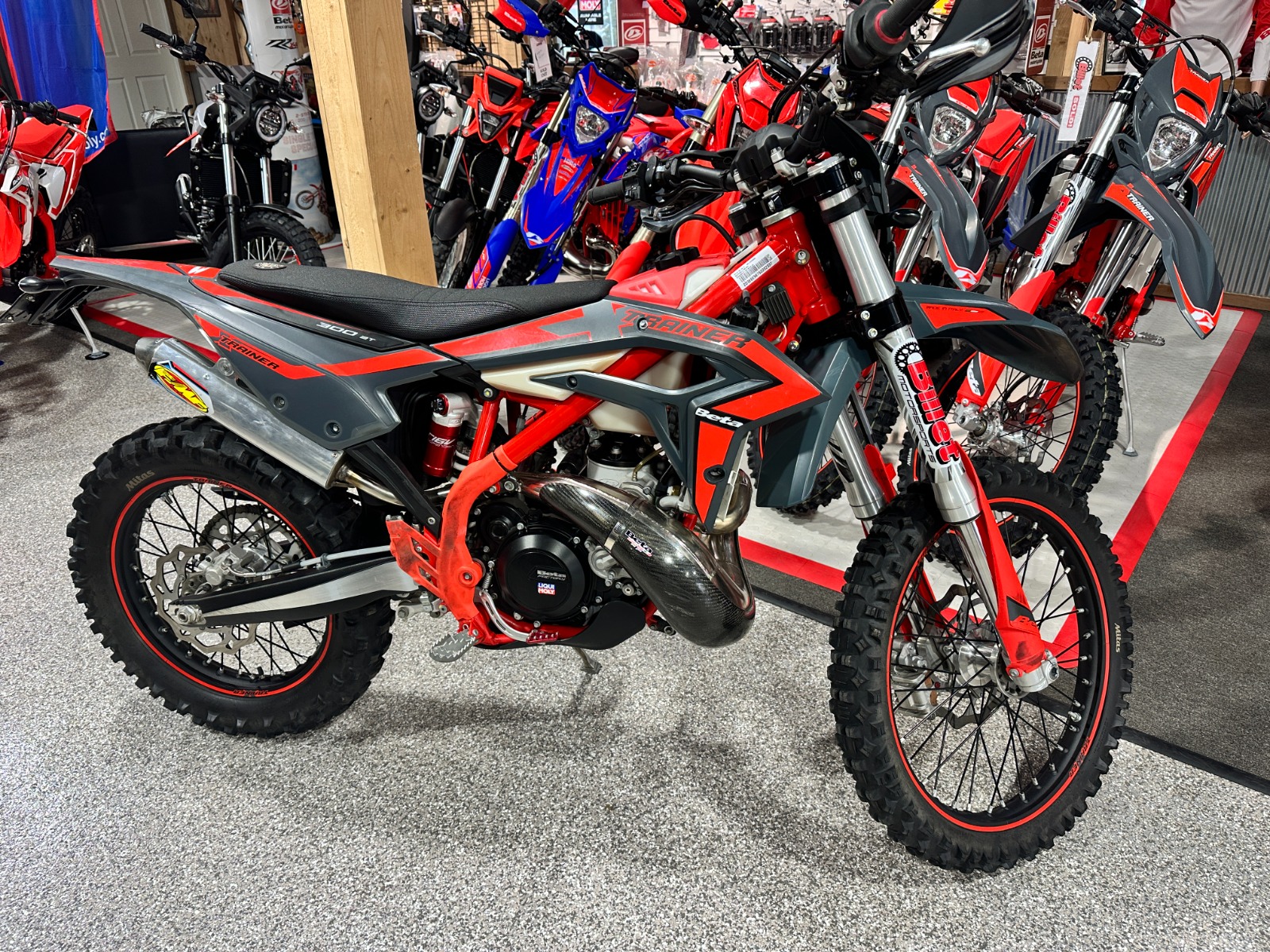 This 2025 Beta 300 X Trainer has been well cared for and lots of upgrades including, but not limited to: a 300 rr expansion chamber, upgraded airbox for 300 RR chamber, FMF silencer, upgraded brake pedal, keyed ignition, carbon fiber cover on chamber, and seat concepts seat. Oil Injection has been deleted.